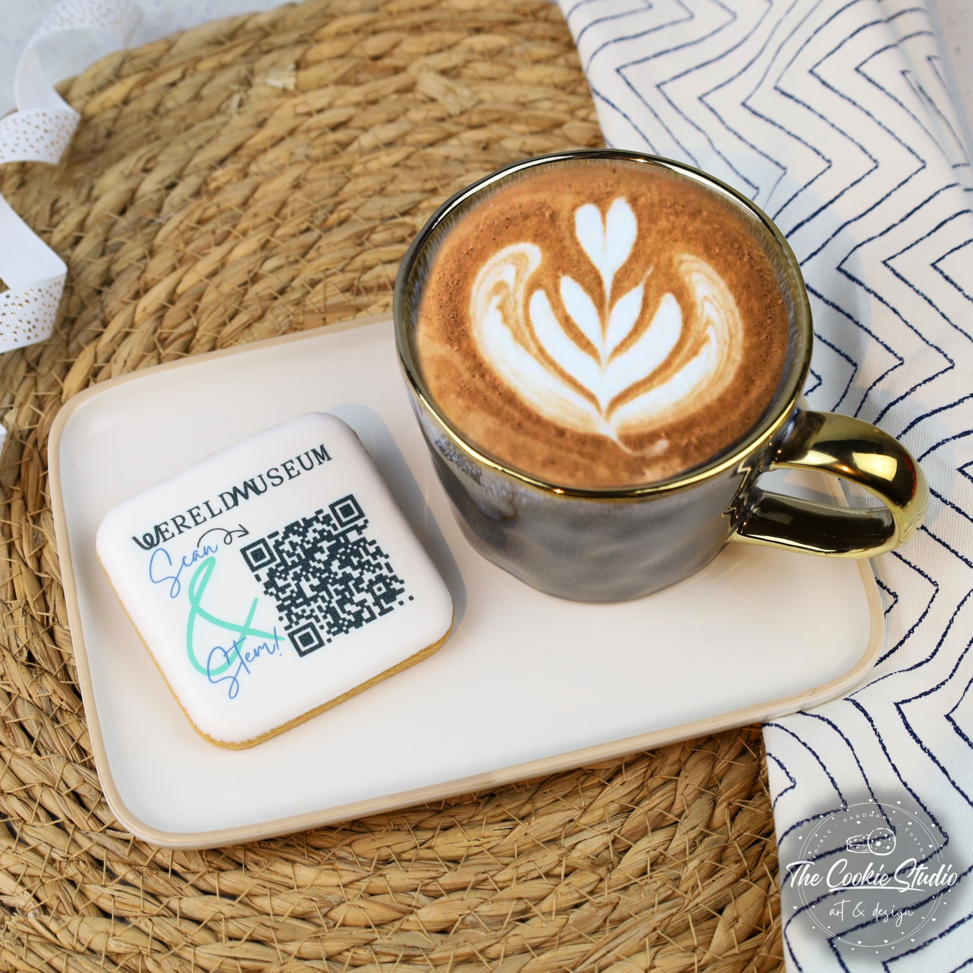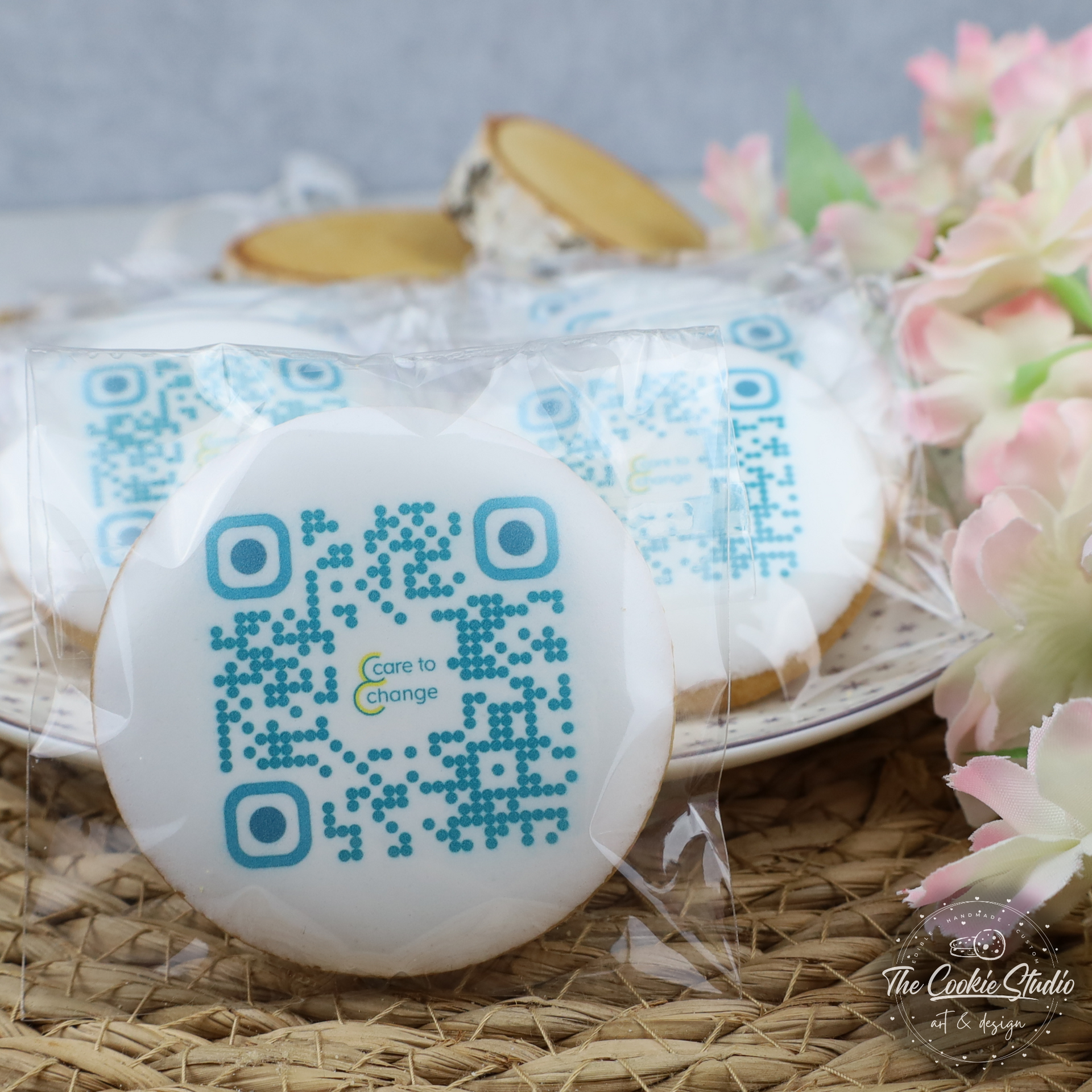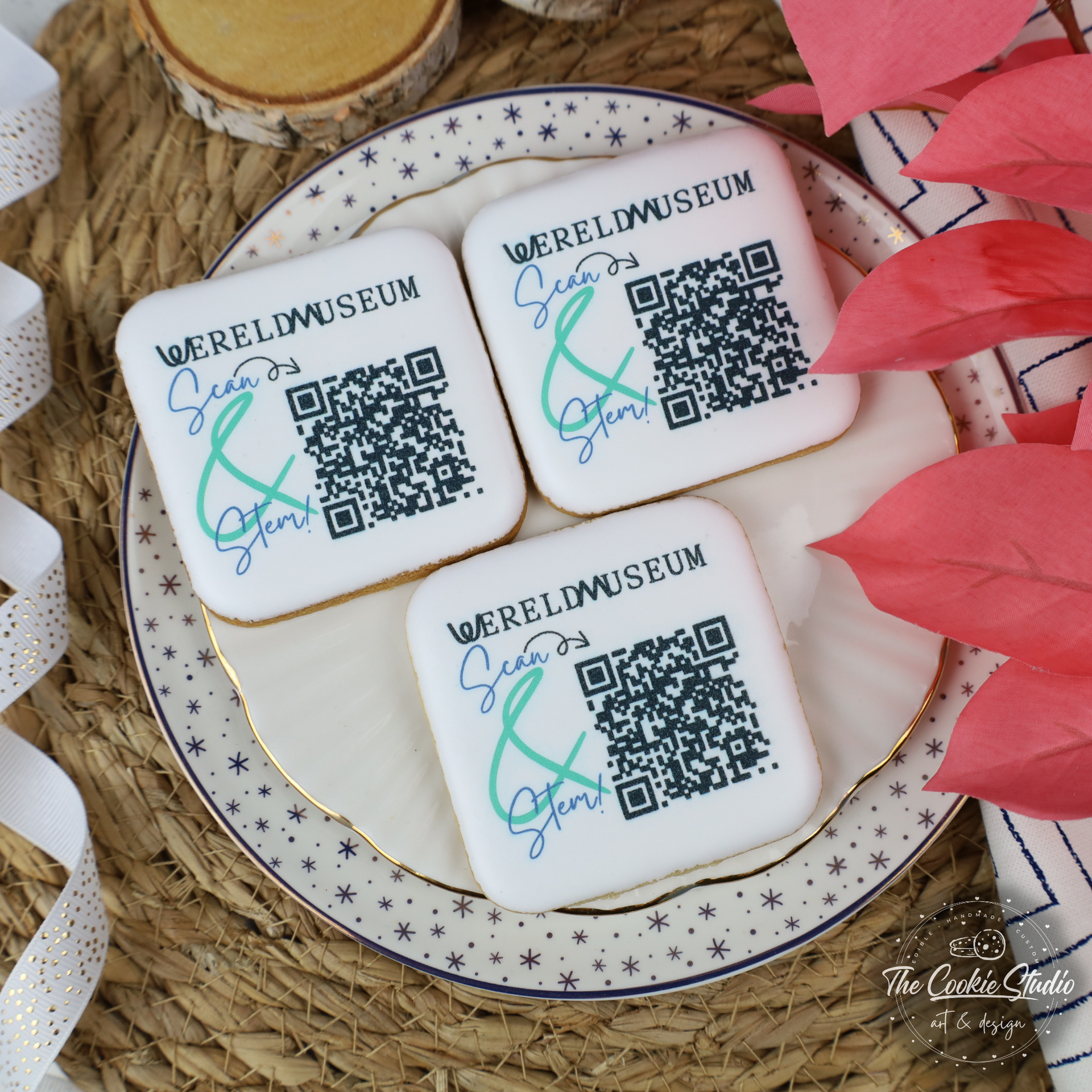 - Koekjes met QR-code: Laat een QR-code op de koekjes drukken die direct naar je website, landingspagina of sociale media leidt. Praktisch en uniek!